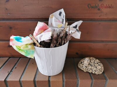 After you are finished, let the paper tissue dry. Once it’s dry, attach it neatly to a peg to form a butterfly.